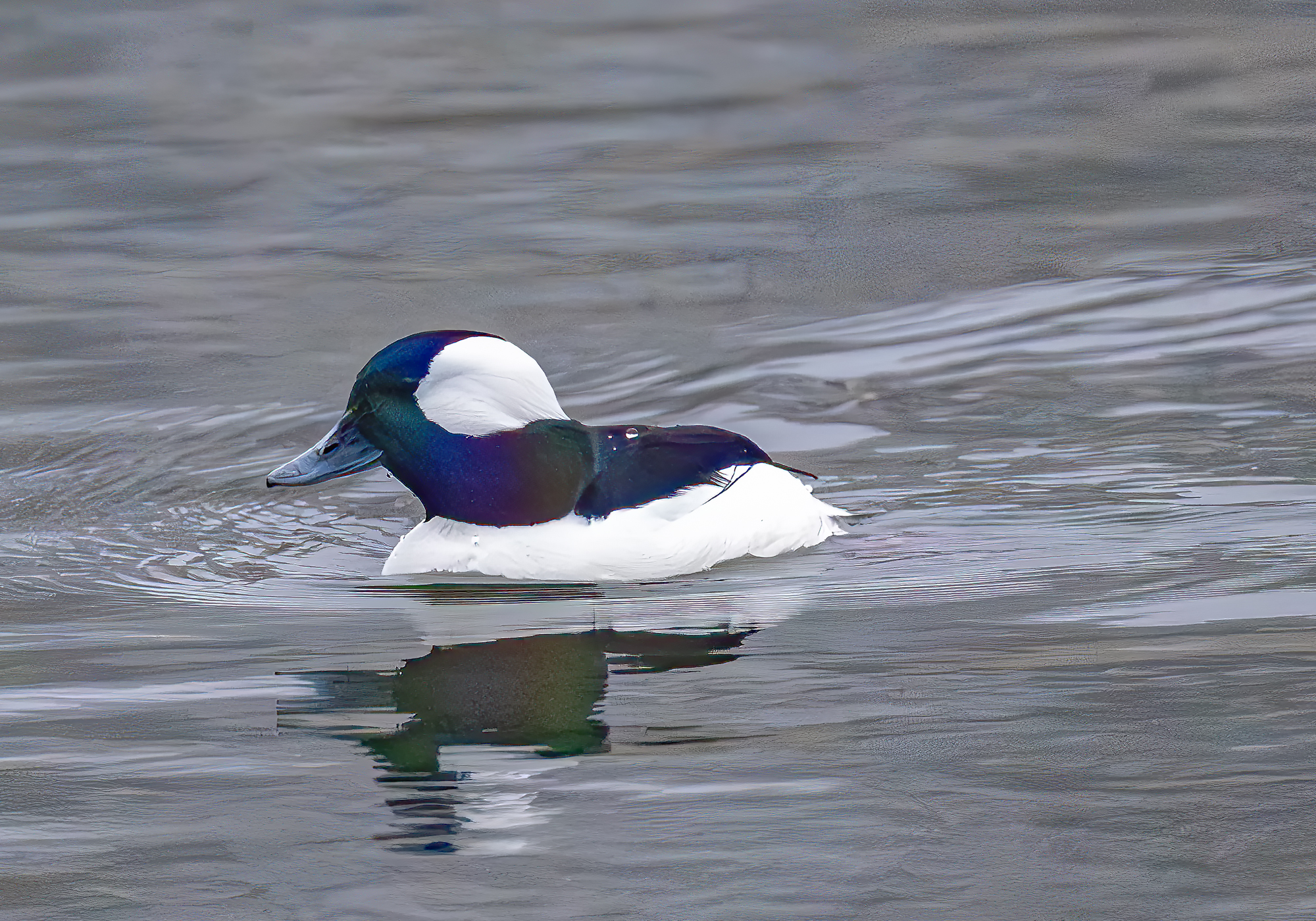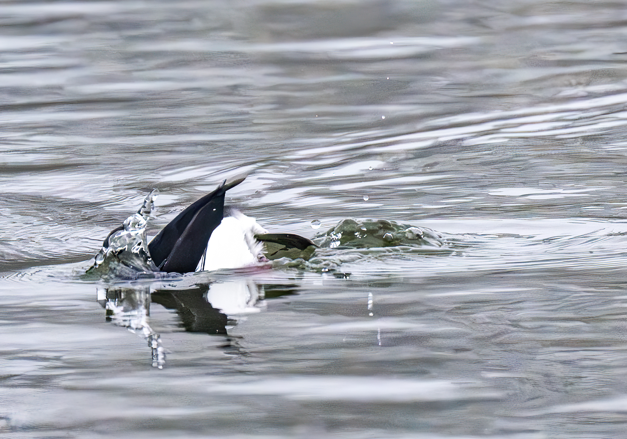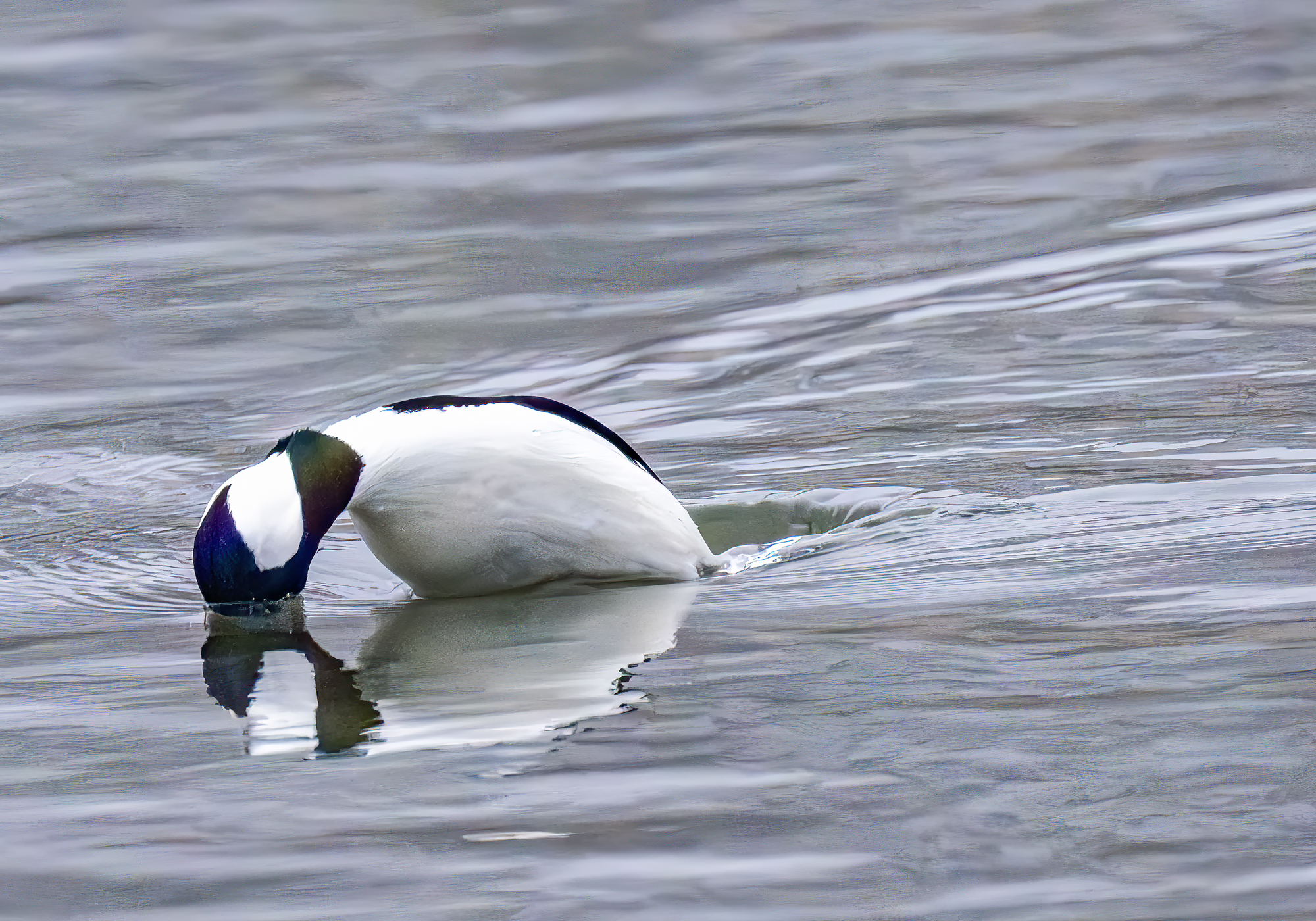 I followed several Red-breasted Mergansers and Buffleheads this morning on foggy water. I love the diffuse, flat (even) light that fog creates and I like to capture wildlife in action to create a little more interest in the photograph. The light was great but the action was not happening. I challenged myself to get a sequence of either duck species going into their fishing dive and I only managed to get one decent one of a Bufflehead. So here you go.