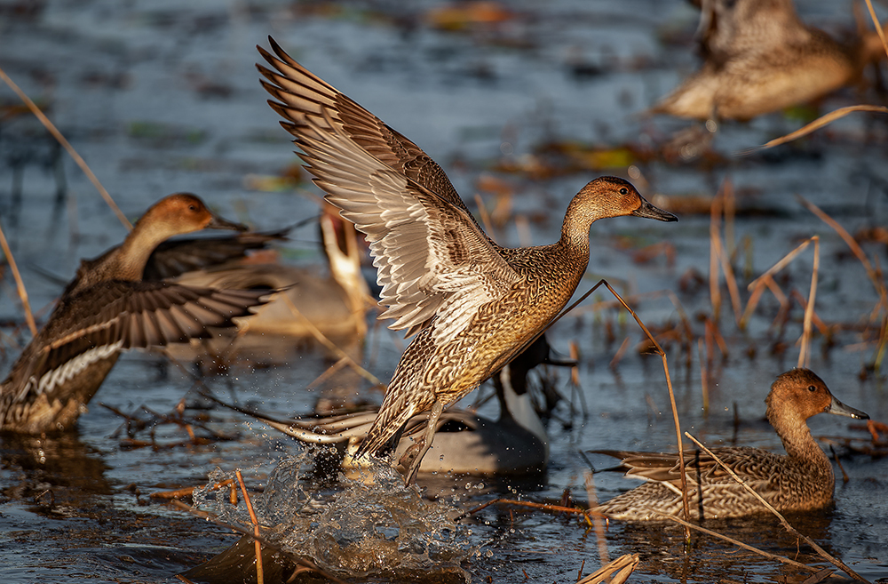 A hen pintail jumping up in a fall marsh says autumn to me. How about you?